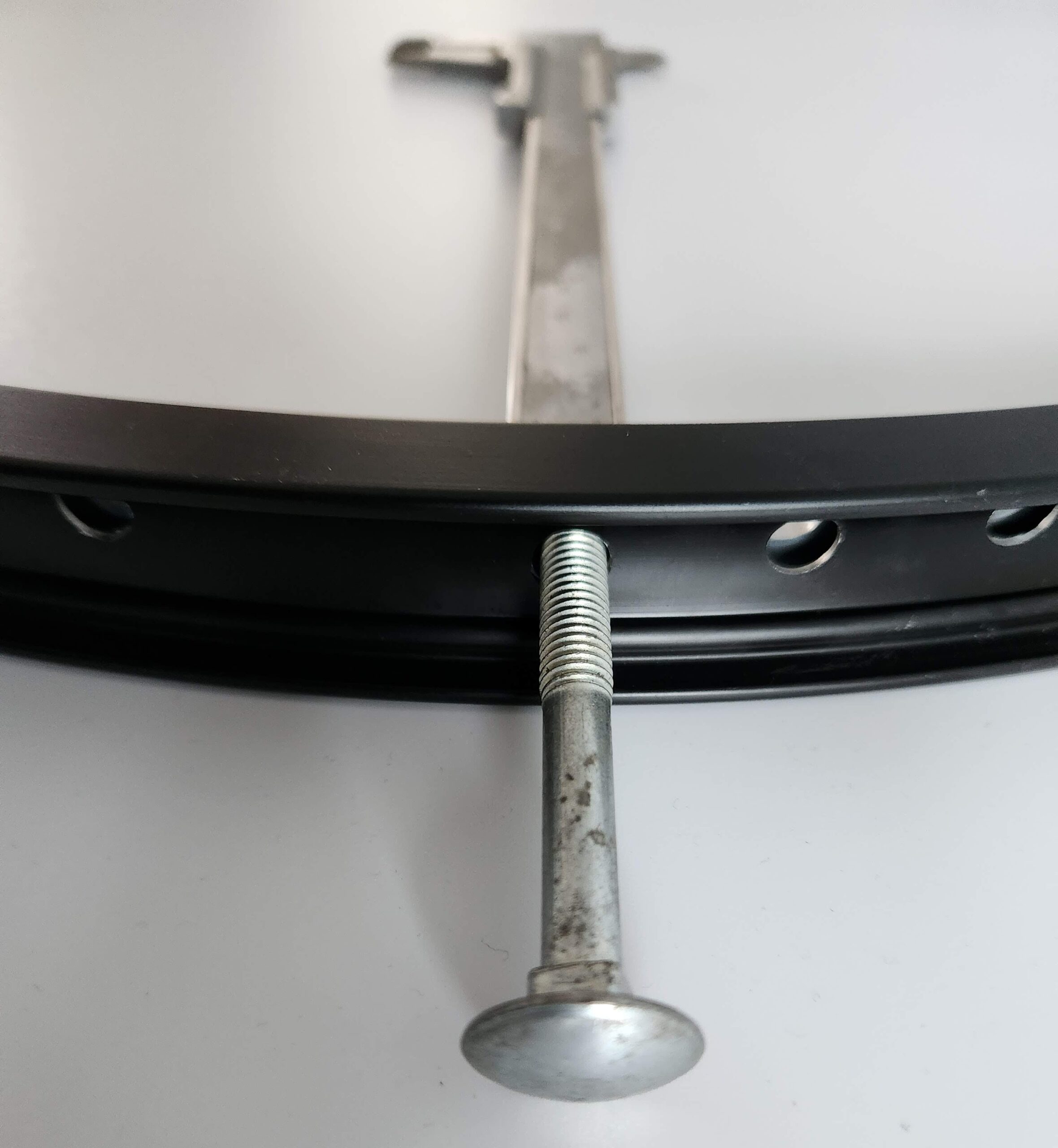 Ich benutze eine M8-Schraube und missbrauche sie als Anschlag für meinen Messschieber. Warum die M8-Schraube, geht da keine kleinere Schraube? Wenn die Felge das hergibt, dann ja… Durch die Senkung der Speichenlöcher in der Felge wohl eher nicht. Ihr müsst darauf achten, dass die Schraube nicht in der Senkung der Felge verschwindet. Andernfalls habt ihr ein verfälschtes Maß, bei der Bestimmung der Höhe des Felgenbodens. Diese Methode ist für gesenkte Speichenlöcher geeignet, da der Speichennippel in der Senkung verschwindet. Folglich ist die voll eingeschraubte Speiche sozusagen bündig mit dem Felgenboden.